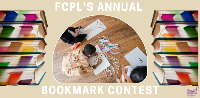 Calling young artists! The Forsyth County Public Library Bookmark Contest opens to entries on Saturday, Aug. 20. All children and teens from grade Pre-K through grade 12 may design a bookmark to enter. Entries will be accepted at all Forsyth County Public Library locations through Monday, Oct. 3 at 6 p.m. Winners selected will be invited to an awards ceremony and luncheon on Nov. 2 or 3.