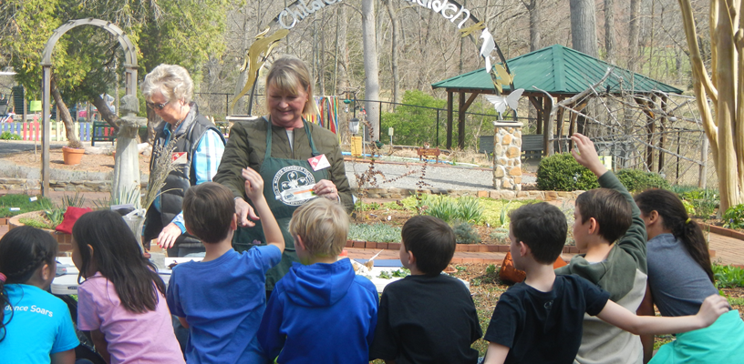 Fifteen EMGVs, many of whom are former educators, conducted the lessons. Leslie Peck, Extension Horticulture Agent and the Director of the Arboretum, worked with the EMGVs to design lessons that would engage students in hands-on learning activities, while adhering to the Essential Standards for science in the third grade curriculum.