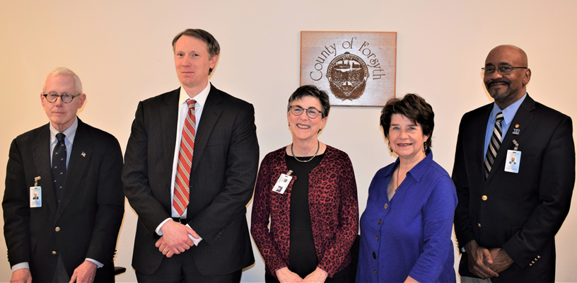 State and county election boards in North Carolina must now have five members due to the most recent change in state law. The Forsyth County Republican and Democratic parties nominated two members each to the local board, which were approved by the State BOE, and the Governor appointed Campbell as the chair. After being sworn in, Durrah was chosen as the board’s secretary by his fellow board members.