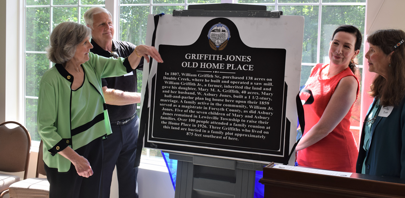 The Forsyth County Historic Resources Commission and Jones Family officially unveiled the Griffith-Jones Old Home Place Historic Marker on May 19.