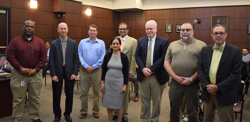 Farragut’s Shail and Sucheta Jain (center) stand with County MIS’s Ryan Marshburn and David Kwiatkowski, and County Tax’s Glen West, Mike Pollock, Nolan Lawson and John Burgiss as some of the many county staff were recognized who contributed to an appraisal program that has earned the county $122,169 in royalties.
