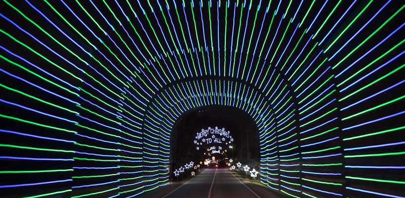 The 28th annual Festival of Lights at Tanglewood Park opens Friday, November 15, 2019 and runs through Tuesday, January 1, 2020. The show’s operating hours are 6 p.m.-11 p.m. nightly, with the exception of December 31 when Festival of Lights closes at 10 p.m. Forsyth County Parks and Recreation is excited to have Lowes Foods returning as the title sponsor for the 2019-2020 season.