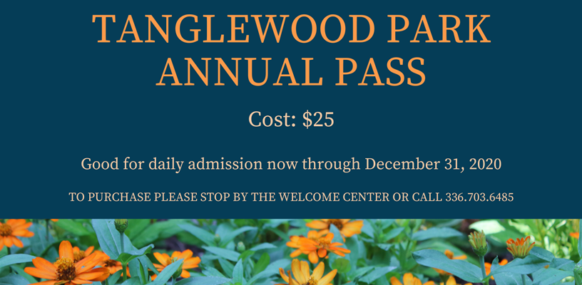 The 2020 Tanglewood Park annual passes are now on sale! Passes can be purchased from the Tanglewood Welcome Center during regular business hours or over the phone at 336-703-6485.
