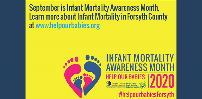 The Forsyth County Infant Mortality Reduction Coalition, as part of the Forsyth County Department of Public Health, is encouraging people to recognize September as National Infant Mortality Awareness Month. September kicks off a three-month social media campaign, which includes October as SIDS Awareness Month and November as Prematurity Awareness Month.