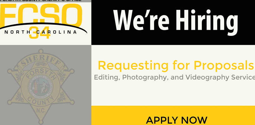 The Forsyth County Sheriff's Office is requesting quotes for an up to eight-month part-time contract for the provision of editing, photography, and videography services. The majority of the time will be spent on photo and video editing. Applicants must be able to take footage given to them and create 1 to 3 minute videos for social media channels in a timely manner resulting in a polished and exciting product. Along with editing, this position will also shoot photos and videos as needed; applicants must also be proficient working with LAV mics, syncing video and audio, and rendering professional audio. Content will be used for a variety of purposes, including on agency social media and websites, as well as directly provided to the media.