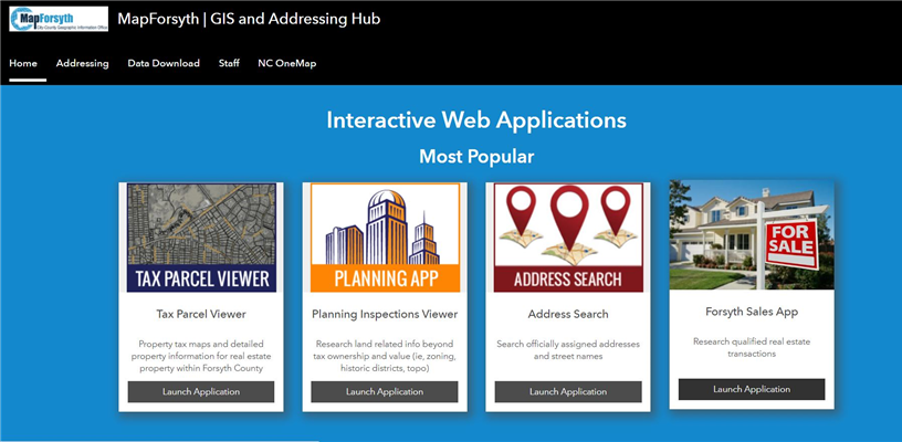 MapForsyth has updated its site, to make it quicker and easier to access the data or applications users need.