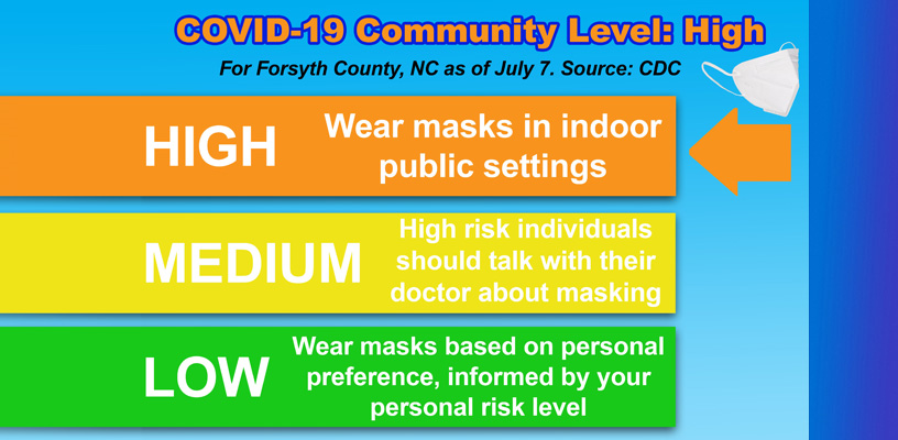 The Centers for Disease Control (CDC) has raised its COVID-19 Community Level for Forsyth County to High.