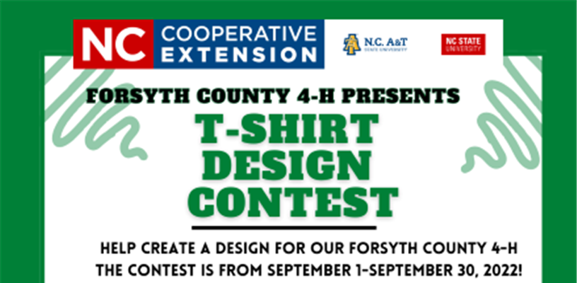 Do you love to design? Would you like to see your design throughout Forsyth County, North Carolina, or possibly Internationally? Now is the opportunity to submit your ideas for a t-shirt design for Forsyth County 4-H. The competition will run from September 1-September 30, 2022. Participants should enter the T-Shirt Design contest should through 4-H Online entry.