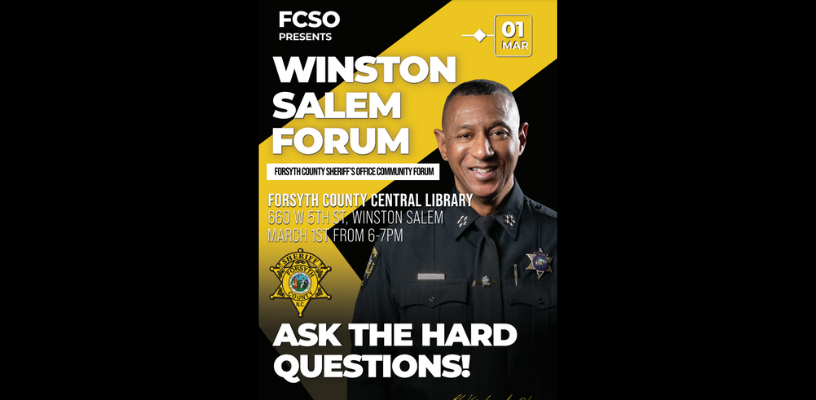 Come see us at our next Community Forum in Winston Salem! Come prepared and ask hard questions. Sheriff Kimbrough and the Forsyth County Sheriff's Office Command Staff will be present to talk with you about the upcoming year. The Community Forum will be held Wednesday, March 1st, from 6 to 7 pm in the Forsyth County Central Library Auditorium, located at 660 West 5th Street in downtown Winston Salem. ALL community members are welcome!