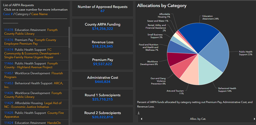 Forsyth County has a new interactive dashboard and map with information on American Rescue Plan Act (ARPA) funds allocated by the County.