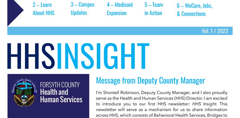 The inaugural issue of the HHS Insight newsletter is now available, providing information and updates on Forsyth County Health and Human Services.