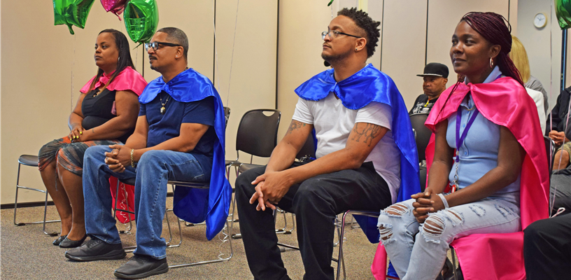Earning those capes is always challenging. The Stepping Up staff help graduates, not just through mental health and substance use issues, but also through their life challenges like finding housing or coping with the lose of a loved one.