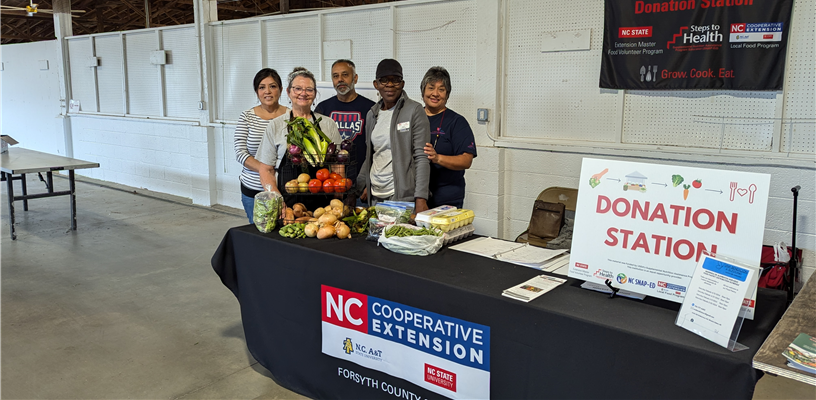 Virginia C. Lopez, the Family and Consumer Sciences Agent for N.C. Cooperative Extension, Forsyth County Center, collaborated with Una Bendicion Food Pantry and the Winston-Salem Fairgrounds Farmers Market (WSFFM) to introduce the NC State Donation Station Program during the spring and summer months of this year. The Donation Station Program aimed to collect donated produce from visitors at the WSFFM while also supporting local farmers. The donated produce was then picked up by the food pantry and distributed to its participants. This joint effort with the support of volunteers resulted in the successful collection of over 1050 pounds of fresh produce donated to Una Bendicion Food Pantry. The local farmers received the full price for their product, reinvesting an estimated $1,100 back into our local farmers' pocket that otherwise may have not sold if not for the donations purchased by visitors at the Farmer's Market. This initiative impacted 540 families, benefitting 2195 individuals including children, adults, and the elderly.