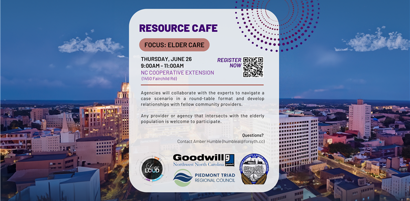 A Resource Cafe will be held on June 26, 2025 from 9-11 a.m. at NC Cooperative Extension, 1450 Fairchild Road. This Resource Cafe will focus on elder care to let providers and agencies see what resources are available for clients, participants, consumers, etc.